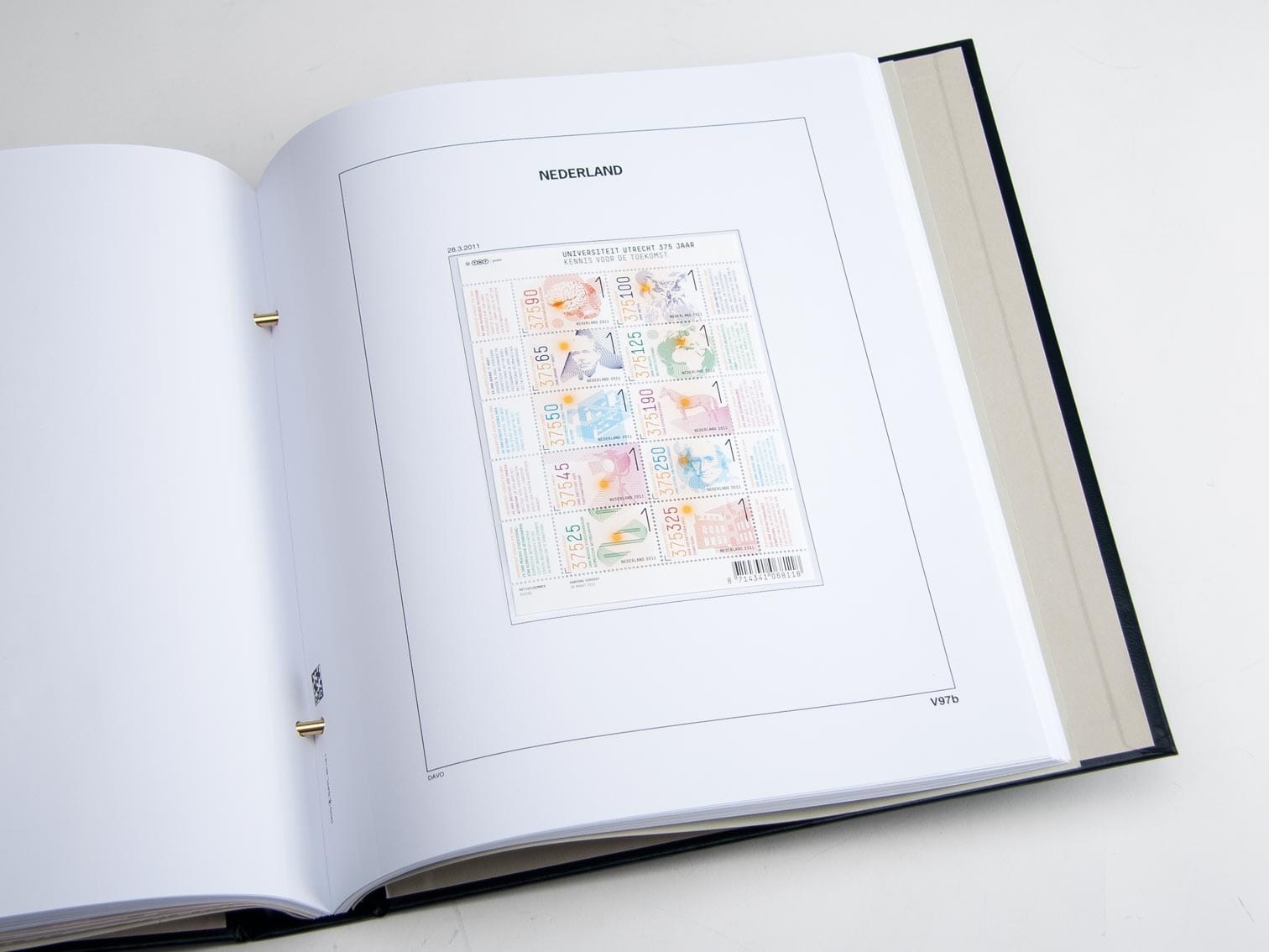 Met een formaat van 275 x 310 mm en een 2 Gats perforatie passen deze voordrukbladen perfect in de bijbehorende Davo albums, van het type DeLuxe, met 2 boekschroeven. Elk blad is voorzien van zwarte kaderlijnen en afbeelding(en) uitgevoerd in het Zwart op bladen in de kleur Wit, van bijv. postzegels, velletjes, postzegelboekjes enz. die thuishoren bij dit voorbedrukte album blad. Hierdoor krijgt u in één oogopslag een duidelijk overzicht van wat u al in uw bezit heeft en wat nog zou ontbreken. Zo houdt u uw verzameling overzichtelijk en up-to-date, ingedeeld per jaar of tijdvak.