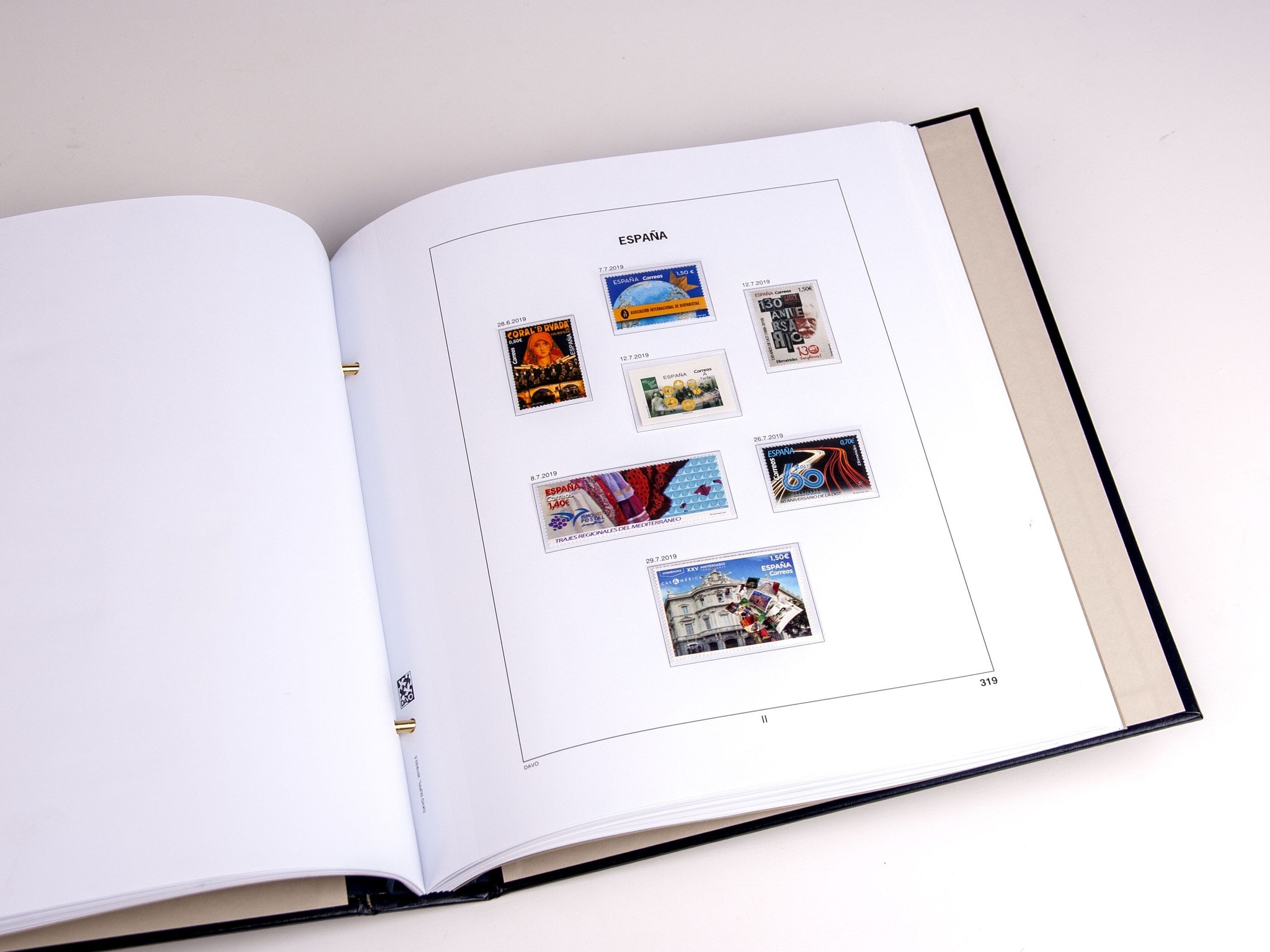 Op alle bladen zijn kaders aangegeven waar u de postzegels kunt onderbrengen, meestal met een afbeelding van de postzegel zelf. Op al deze kaders zijn transparante klemstrookjes aangebracht om uw postzegels veilig in onder te brengen.Het supplement Spanje bevat het jaar 2019.