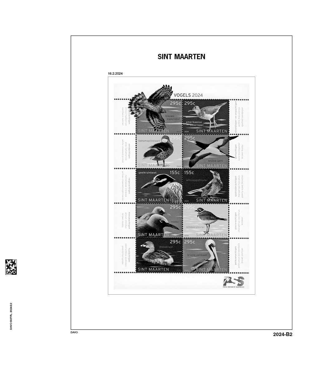 Met een formaat van 275 x 310 mm en een 2 Gats perforatie passen deze voordrukbladen perfect in de bijbehorende Davo albums, van het type DeLuxe, met 2 boekschroeven. Elk blad is voorzien van zwarte kaderlijnen en afbeelding(en) uitgevoerd in het Zwart op bladen in de kleur Wit, van bijv. postzegels, velletjes, postzegelboekjes enz. die thuishoren bij dit voorbedrukte album blad. Hierdoor krijgt u in één oogopslag een duidelijk overzicht van wat u al in uw bezit heeft en wat nog zou ontbreken. Zo houdt u uw verzameling overzichtelijk en up-to-date, ingedeeld per jaar of tijdvak.