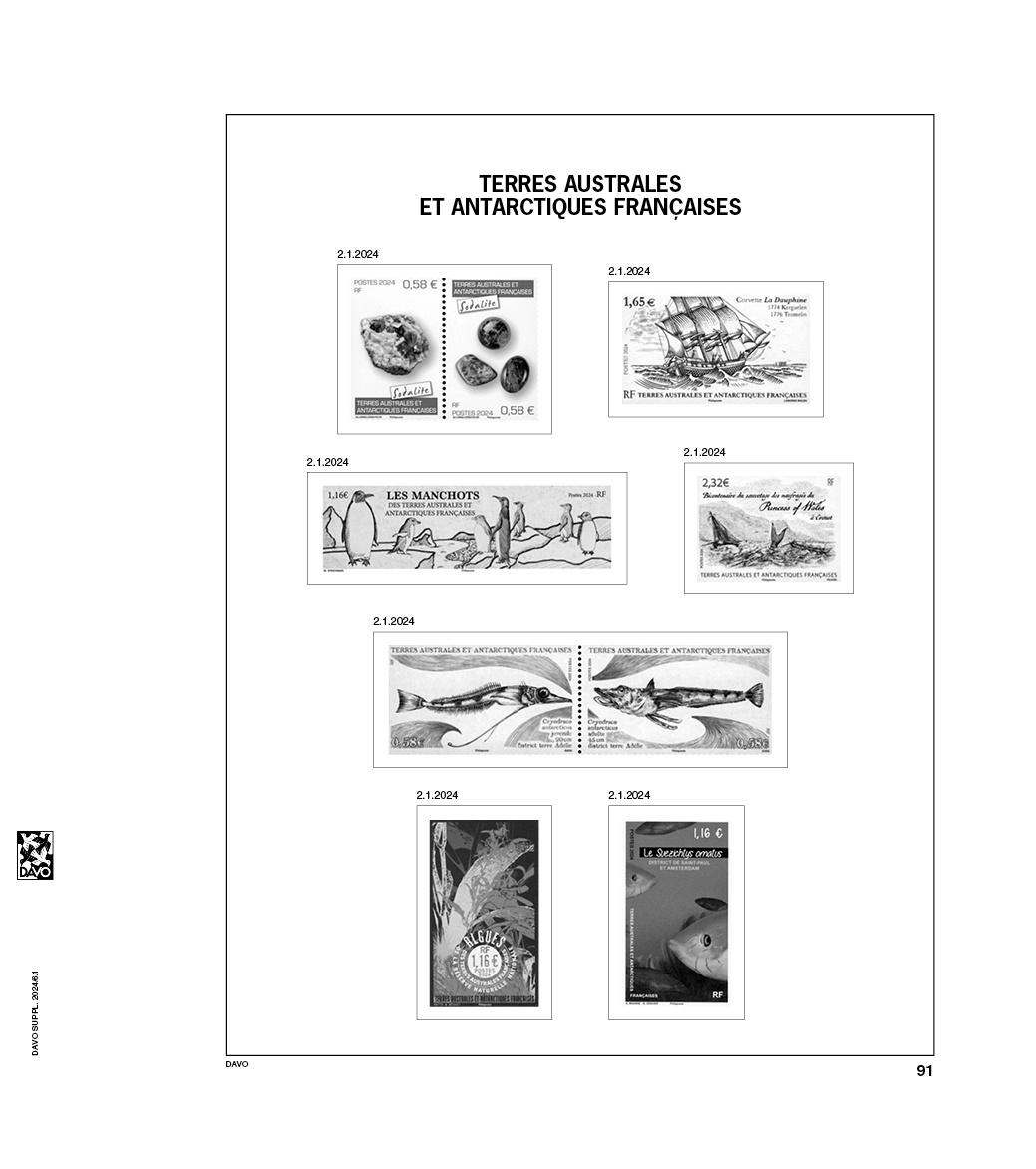 Met een formaat van 275 x 310 mm en een 2 Gats perforatie passen deze voordrukbladen perfect in de bijbehorende Davo albums, van het type DeLuxe, met 2 boekschroeven. Elk blad is voorzien van zwarte kaderlijnen en afbeelding(en) uitgevoerd in het Zwart op bladen in de kleur Wit, van bijv. postzegels, velletjes, postzegelboekjes enz. die thuishoren bij dit voorbedrukte album blad. Hierdoor krijgt u in één oogopslag een duidelijk overzicht van wat u al in uw bezit heeft en wat nog zou ontbreken. Zo houdt u uw verzameling overzichtelijk en up-to-date, ingedeeld per jaar of tijdvak.