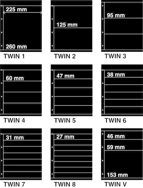 Er is een grote verscheidenheid aan ontwerpen verkrijgbaar van het type Twin van het merk DAVO. Waarbij u meestal de keuze heeft in het aantal horizontale of verticale vakken afhankelijk van uw verzameling.