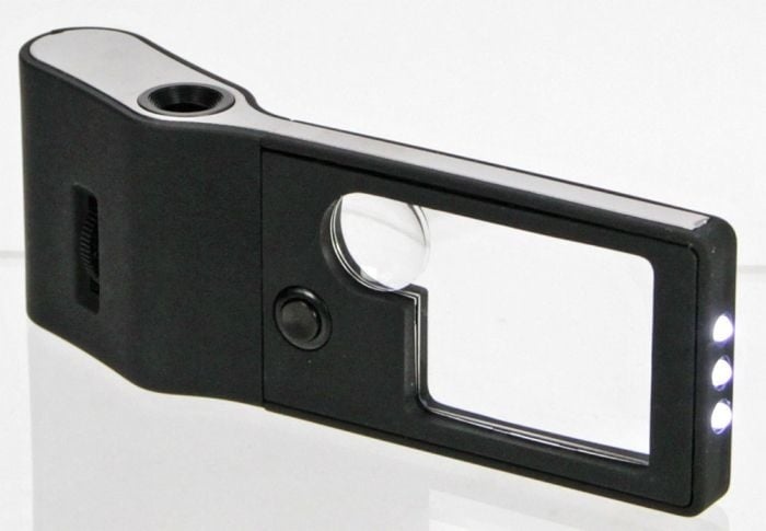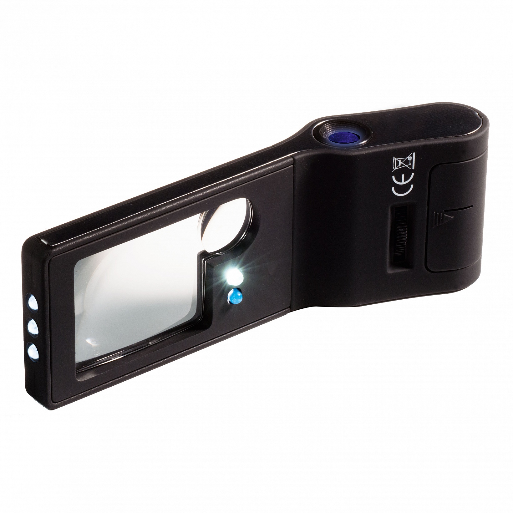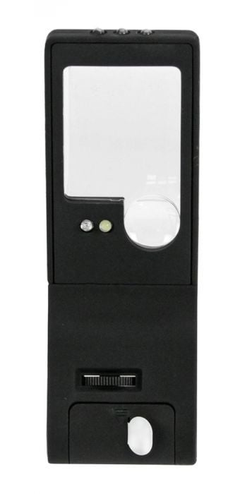Deze Zakformaat loupe heeft heeft een hoogwaardige lens van Acryl, welk is uitgerust met het lens-in-lens systeem. Waarbij de grote lens de lage vergroting heeft en de kleine lens welke speciaal is ingeslepen heeft de hogere vergroting Acryl. Naast de loupe heeft deze Multiloupe een ingebouwd LED-microscoop met 15x vergroting, voor gedetailleerde inspectie van je verzamelobjecten. Alle lenze zijn speciaal geslepen om gedetailleerde inspectie van uw object te kunnen waarborgen voor de gebruiker. De gehele behuizing van deze loupe is van zwart kunstof met aluminium accent. Indien nodig kunt u de ingebouwde LED verlichting aanzetten om uw detail van u object wat u wilt vergroten beter te zien als er te weinig omgevings licht aanwezig is. Ook kunt u met het gebruik van de geïntegreerde langegolf UV LED's (365 nm) bijvoorbeeld postzegels en bankbiljetten te inspecteren.
