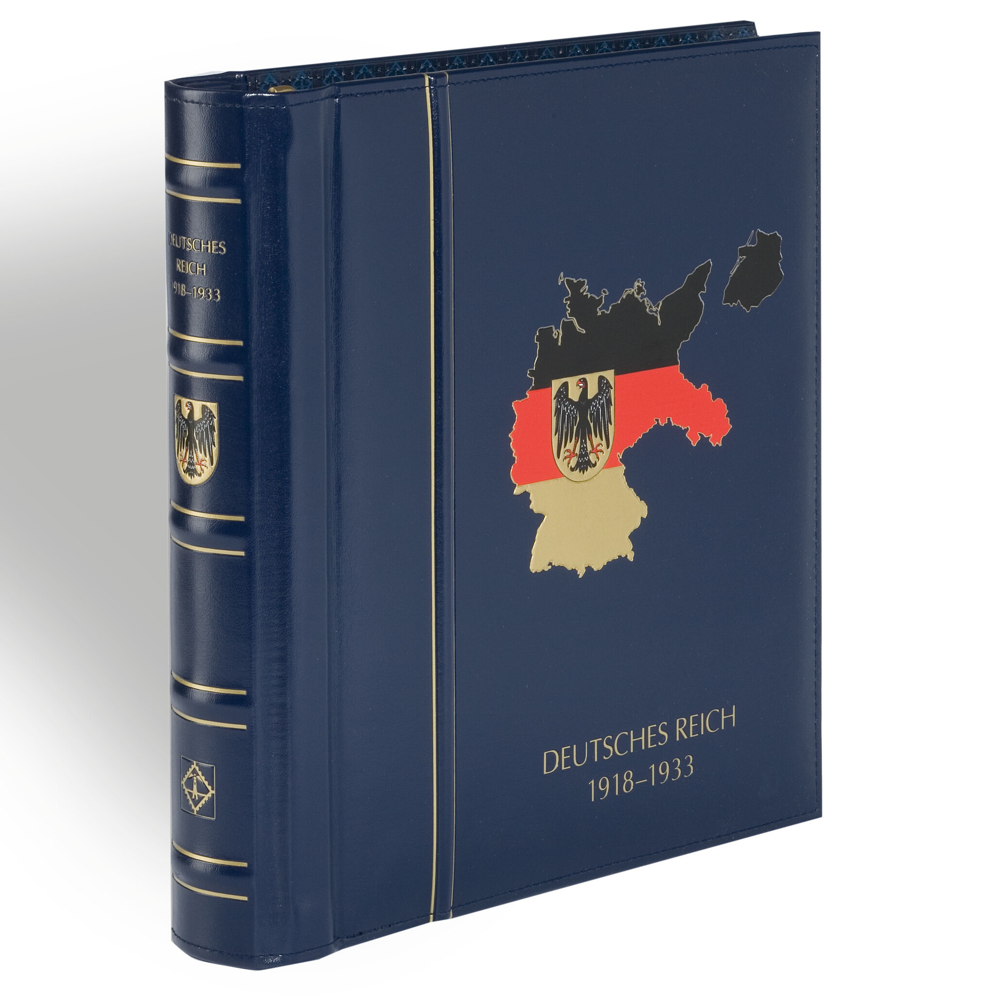 De albums worden geleverd in de kleur Blauw. Op de voorkant staat de tekst Deutsches Reicht 1918 - 1933, samen met de landcontour, wat het album een uniek en herkenbaar karakter geeft. Deze albums combineren functionaliteit met elegantie en vormen daarmee een waardevolle aanvulling op uw postzegelcollectie.
