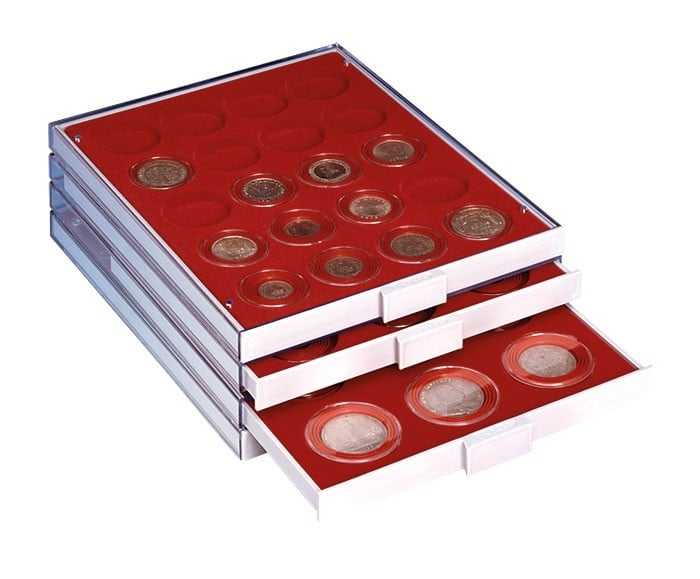 Deze ronde muntcapsules zijn geschikt voor munten met een diameter van 16 tot 39 mm en bieden dankzij uitbreekbare afstandsringen een nauwkeurige en stabiele pasvorm. Hierdoor kan iedere munt exact passend worden opgeborgen, zonder speling of risico op beschadiging.