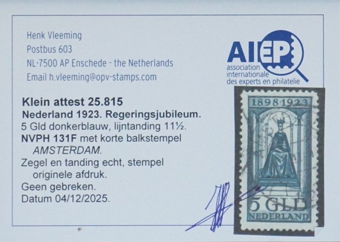Deze gestempelde Postzegel is opgenomen in de NVPH catalogus, met een cataloguswaarde van € 225,00
