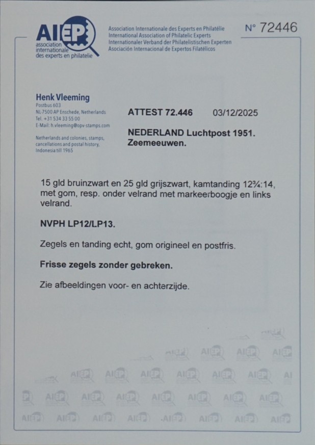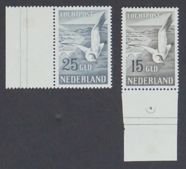Originele nederlandse luchtpostzegels gebruikt voor verzending via luchtpost tegen specifiek vastgesteld luchtposttarief binnen internationale postverbindingen