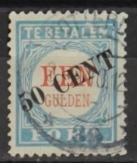 Originele nederlandse portzegel gebruikt voor naheffing bij onvoldoende gefrankeerde post binnen het officiële postsysteem van de postdienst