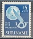 Originele surinaamse luchtpostzegel gebruikt voor verzending via luchtpost tegen specifiek vastgesteld luchtposttarief binnen internationale postverbindingen