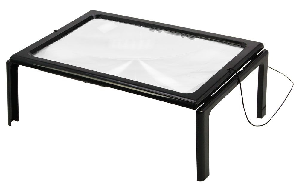 Deze platte LED-loupe is ideaal om te lezen, vanwege een groot formaat kijkvenster. De lens heeft een vergroting van 3x.