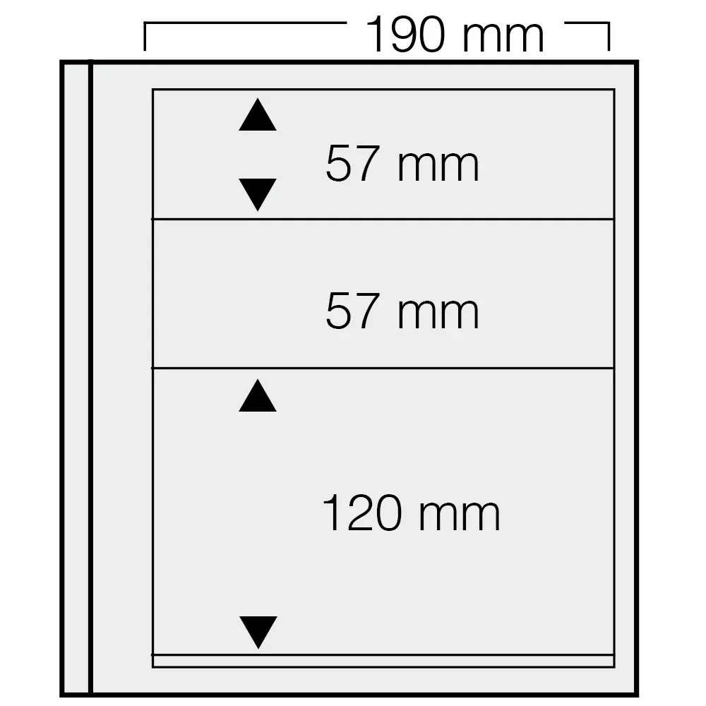 3 vaks indeling: 190 x 57(2x), 190x120 mm