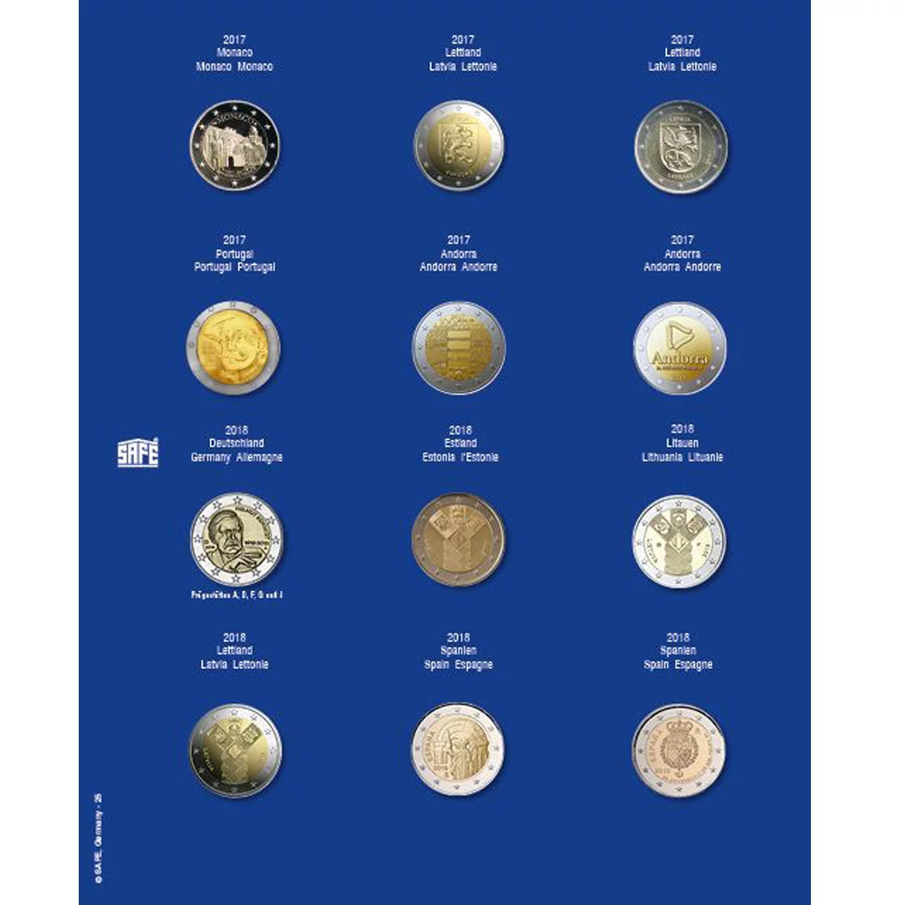 Gepatenteerde insteekbladen waar de munten in te drukken zijn. De munten zijn aan de voor- en achterkant te bekijken. U kunt u munten extra bescherming bieden, door er een beschermings hoes (SA.N-0007859) over te schuiven.