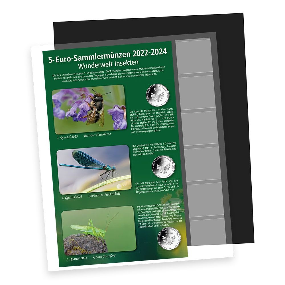 7 Muntbladen (SA.N-0007407) voor de Duitse 5 euro herdenkingsmunten, met losse voorbedrukte kartonnen infobladen.