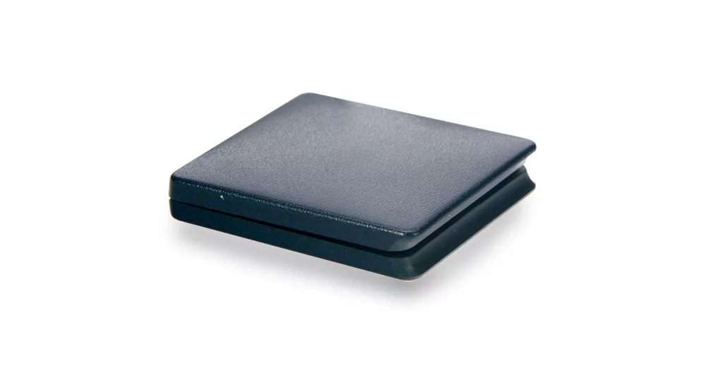 Hoogwaardige munten cassette uitgevoerd uit donker blauwe kunstof, blauw velours inleg. De bodem is voorzien van een blauw fluweel.