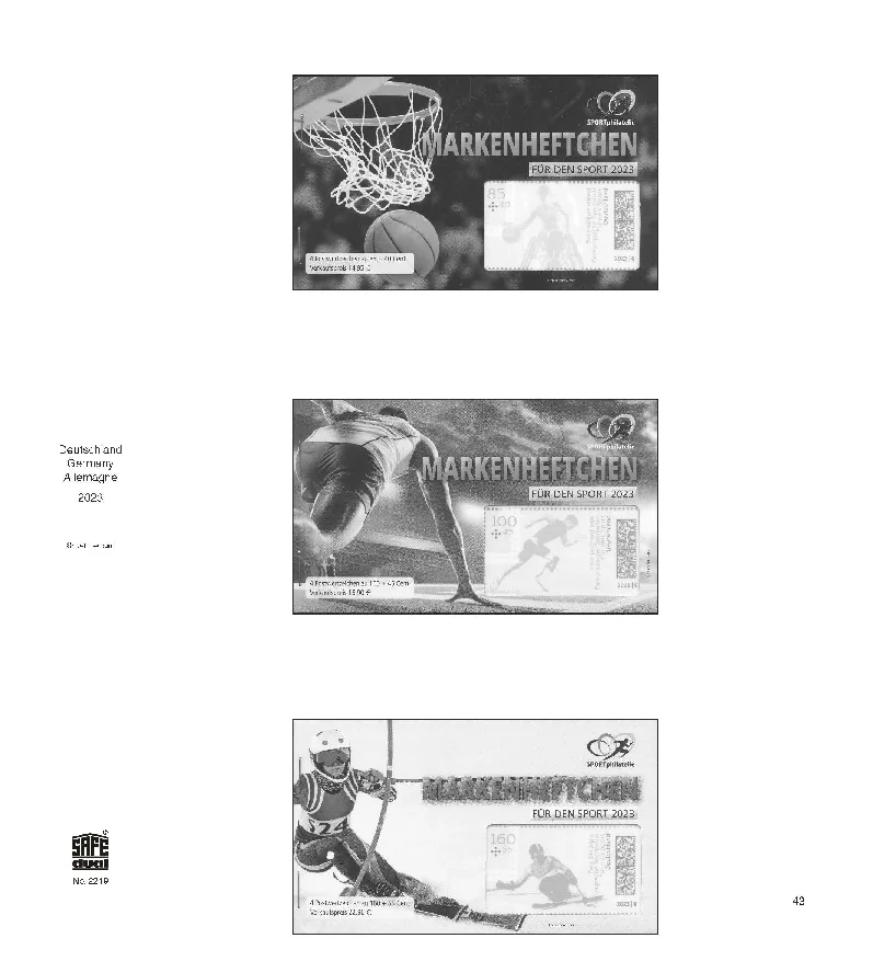 De supplementen met voordrukbladen van Safe, van het type Dual, zijn vervaardigd uit bijzonder stevig, houtvrij en verouderingsbestendig karton met een gewicht van 170 gr/m2. Deze hoogwaardige bladen zijn uitgevoerd in de kleur Champagne en voorzien van zuur- en weekmakervrije transparante voorblad(en). Deze insteekbladen beschermen uw postzegels, postzegelboekjes, velletjes enz. optimaal tegen invloeden van buitenaf, zonder het zicht op uw collectie te belemmeren.