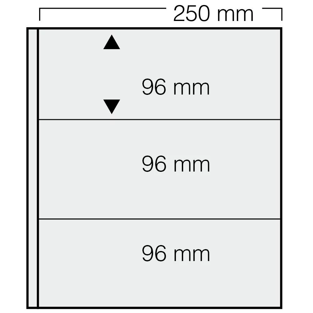 3 vaks indeling: 250 x 96 mm