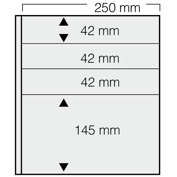 4 vaks indeling: 250 x 42 (3x), 250x145 mm