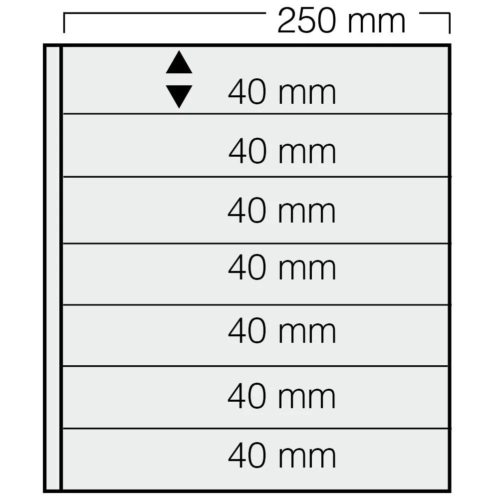 Deze Insteekbladen zijn uitgerust met een transparant draagfolie, ook wel het moederblad genoemd, dat voorzien is van transparante vak(ken). Dit ontwerp biedt u de unieke mogelijkheid om uw verzameling zowel aan de voorzijde als aan de achterzijde te presenteren, zodat u optimaal gebruik kunt maken van de ruimte en de verzameling in zijn geheel zichtbaar is. Door het transparante materiaal kunnen de items helder en overzichtelijk getoond worden, wat bijdraagt aan een nette en professionele uitstraling van uw verzameling.