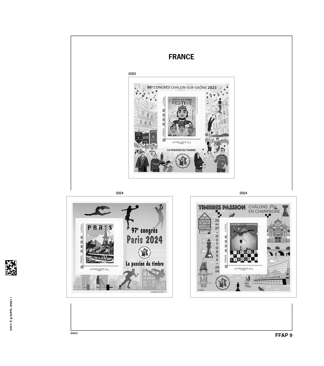 Met een formaat van 275 x 310 mm en een 2 Gats perforatie passen deze voordrukbladen perfect in de bijbehorende Davo albums, van het type DeLuxe, met 2 boekschroeven. Elk blad is voorzien van zwarte kaderlijnen en afbeelding(en) uitgevoerd in het Zwart op bladen in de kleur Wit, van bijv. postzegels, velletjes, postzegelboekjes enz. die thuishoren bij dit voorbedrukte album blad. Hierdoor krijgt u in één oogopslag een duidelijk overzicht van wat u al in uw bezit heeft en wat nog zou ontbreken. Zo houdt u uw verzameling overzichtelijk en up-to-date, ingedeeld per jaar of tijdvak.