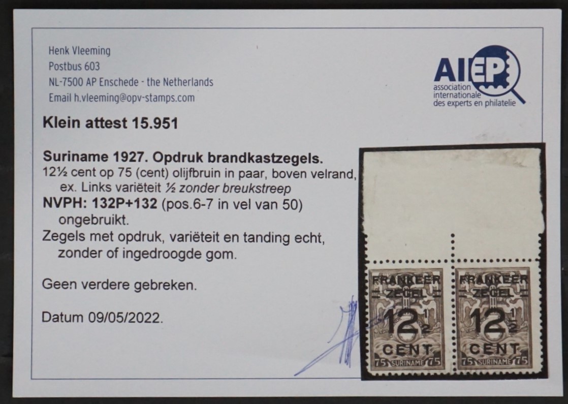NVPH. 132-132P, Horizontaal paar met tab, met certificaat.