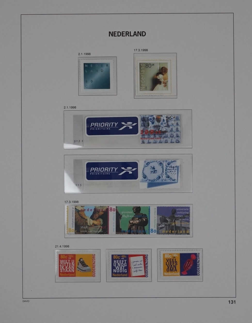 De bladen van het album Nederland zijn gemaakt van stevig houtvrij papier (170 gr.). Op alle bladen zijn kaders aangegeven waar u de postzegels kunt onderbrengen, meestal met een afbeelding van de postzegel zelf. Op al deze kaders zijn transparante klemstrookjes aangebracht om uw postzegels veilig in onder te brengen.